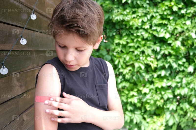 Мальчику сделали прививку от коронавирусной инфекции. Вакцинация против ковид-19. Копировать пространство