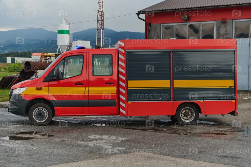 Современная пожарная машина, оснащенная передовыми спасательными технологиями, вместе со своей квалифицированной пожарной командой готова вмешаться и быстро отреагировать на чрезвычайные ситуации, обеспечивая безопасность и защиту населения