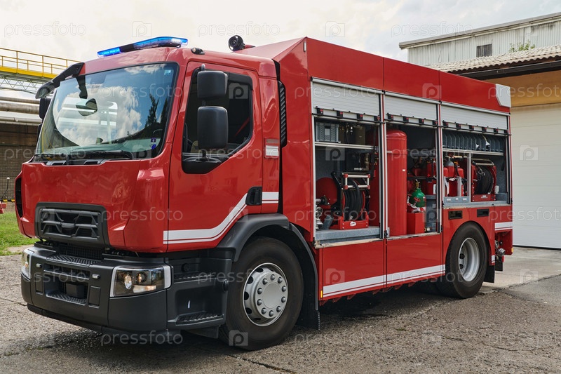 Современная пожарная машина, оснащенная передовыми спасательными технологиями, вместе со своей квалифицированной пожарной командой готова вмешаться и быстро отреагировать на чрезвычайные ситуации, обеспечивая безопасность и защиту населения