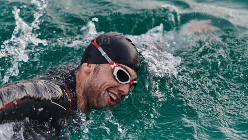 Профессиональный триатлонист тренируется с непоколебимой преданностью к предстоящим соревнованиям на озере, излучая чувство атлетизма и глубокое стремление к совершенству