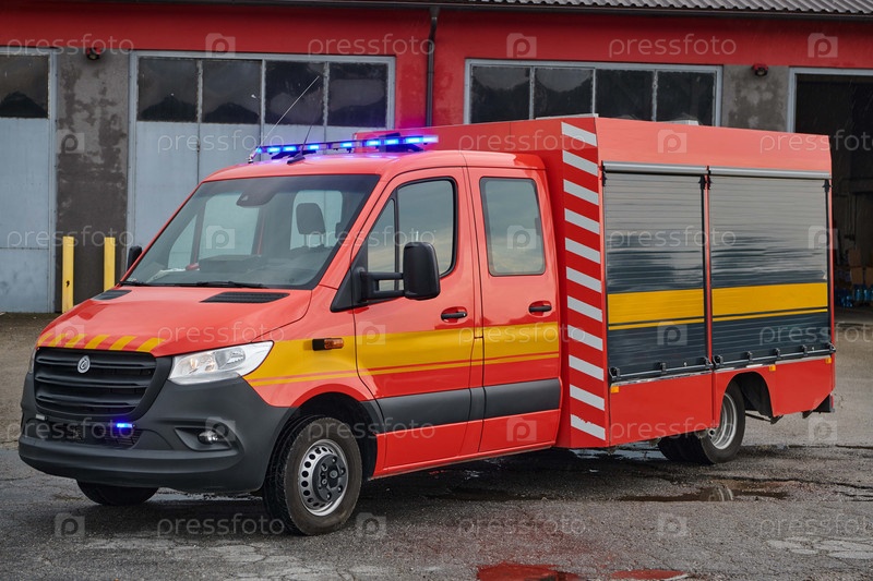 Современная пожарная машина, оснащенная передовыми спасательными технологиями, вместе со своей опытной пожарной командой готова вмешаться и быстро отреагировать на чрезвычайные ситуации, обеспечивая безопасность и защиту населения