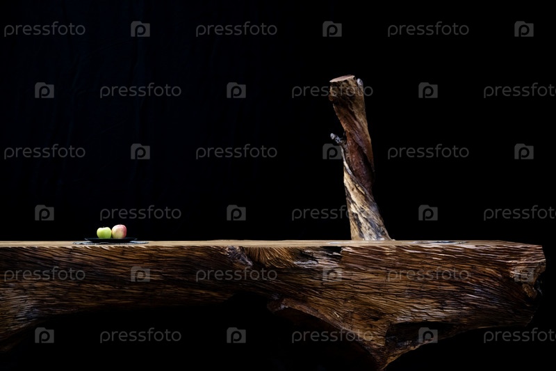 Художественный массивный деревянный стол, изолированный на черном фоне