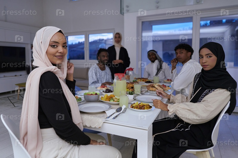 В священный месяц Рамадан мусульманская семья радостно собирается за столом, с нетерпением ожидая общего ифтара, участвуя в приготовлении общей трапезы и объединяясь в ожидании коллективной молитвы, воплощая дух единения, преданности и культурный праздник