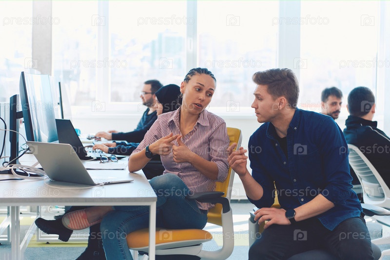 Совместный процесс мультикультурной квалифицированной молодой бизнес-команды во время мозгового штурма в офисе. Разнообразная группа молодых людей, одетых в формальную одежду, сотрудничает в разработке дизайн-проекта