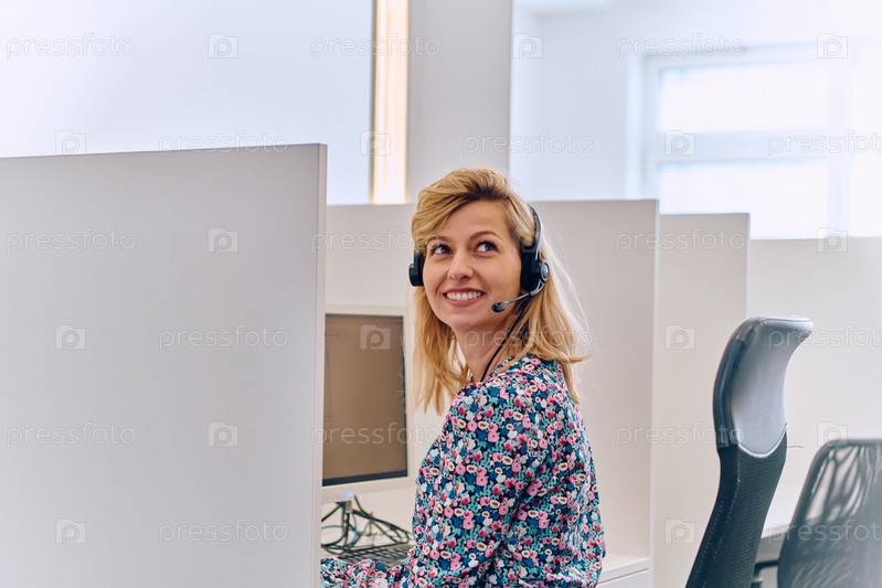 Женщина-агент колл-центра, оказывающая поддержку и помощь клиентам