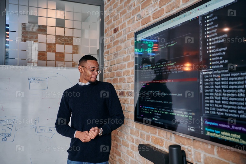 Афроамериканский бизнесмен убедительно презентует свою бизнес-стратегию своим коллегам, способствуя сотрудничеству и дальновидному мышлению