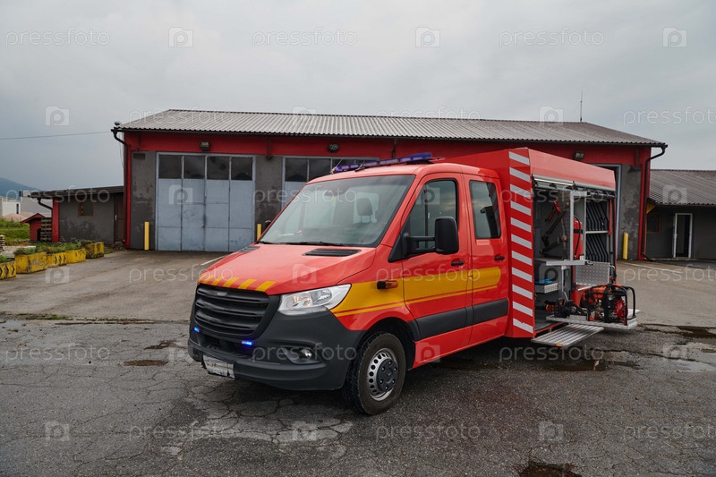 Современная пожарная машина, оснащенная передовыми спасательными технологиями, вместе со своей квалифицированной пожарной командой готова вмешаться и быстро отреагировать на чрезвычайные ситуации, обеспечивая безопасность и защиту населения