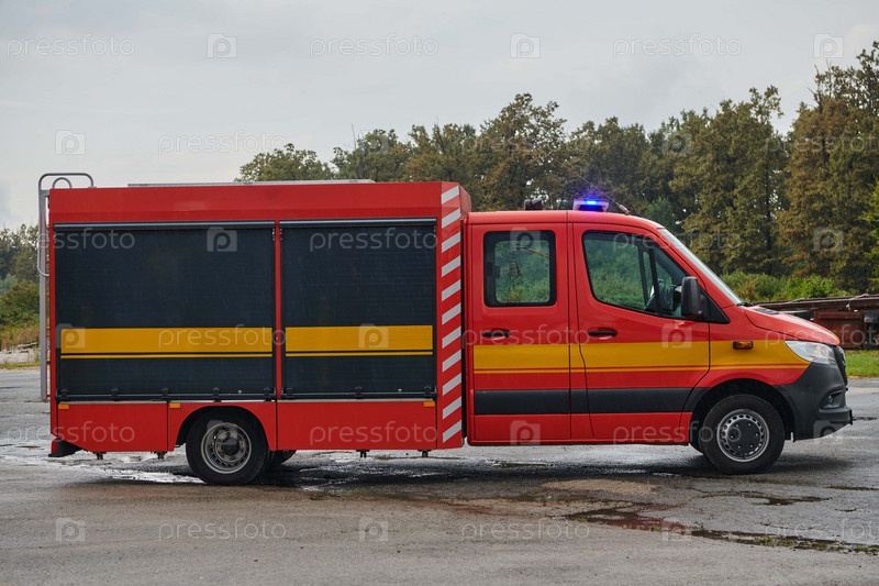 Современная пожарная машина, оснащенная передовыми спасательными технологиями, вместе со своей опытной пожарной командой готова вмешаться и быстро отреагировать на чрезвычайные ситуации, обеспечивая безопасность и защиту населения