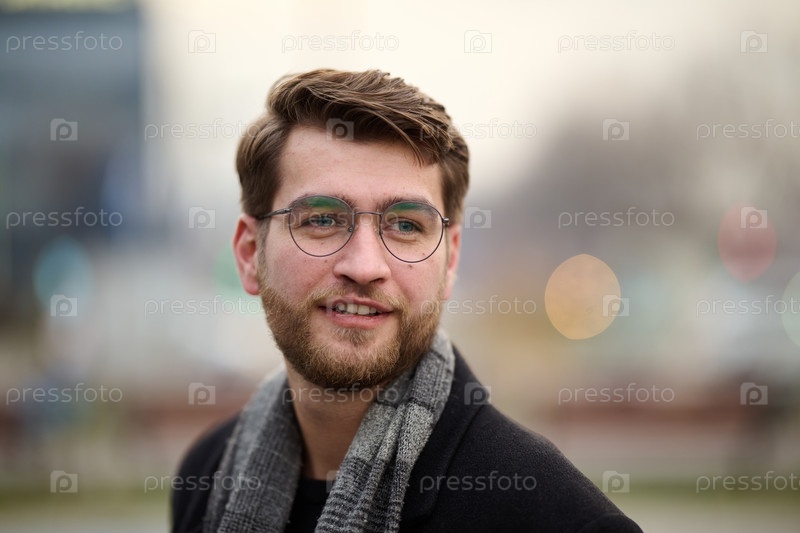 Красивый молодой человек, одетый в стильный костюм, галстук и очки, выглядит серьезным и уверенным в себе бизнесменом