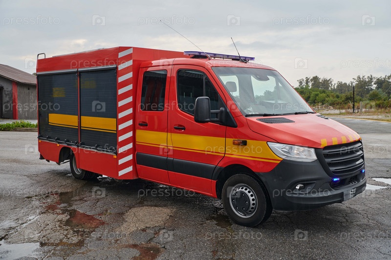 Современная пожарная машина, оснащенная передовыми спасательными технологиями, вместе со своей квалифицированной пожарной командой готова вмешаться и быстро отреагировать на чрезвычайные ситуации, обеспечивая безопасность и защиту населения