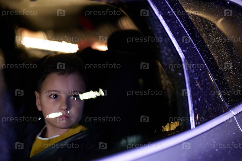 Маленький мальчик наслаждается поездкой на машине, запечатленной через окно, наблюдая за проезжающими пейзажами