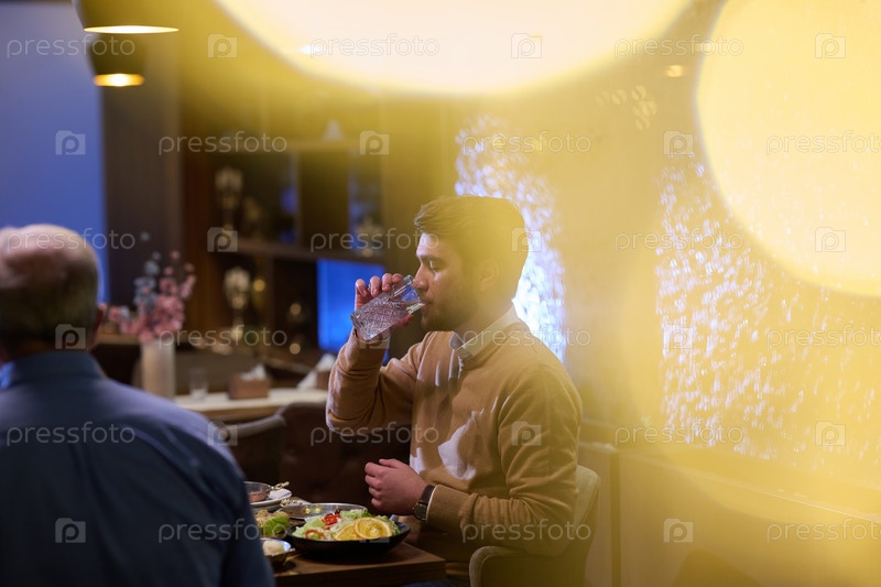Сын и его пожилой отец ведут душевную беседу, терпеливо ожидая ифтара, способствуя укреплению связи между поколениями и заветным моментам семейной связи