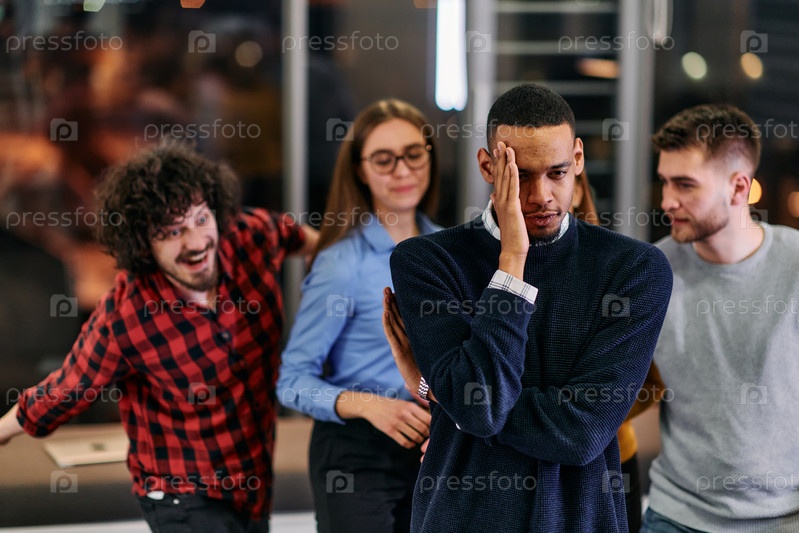 Группа молодых деловых людей весело играет в интересные игры, отдыхая от работы в современном офисе. Селективный фокус