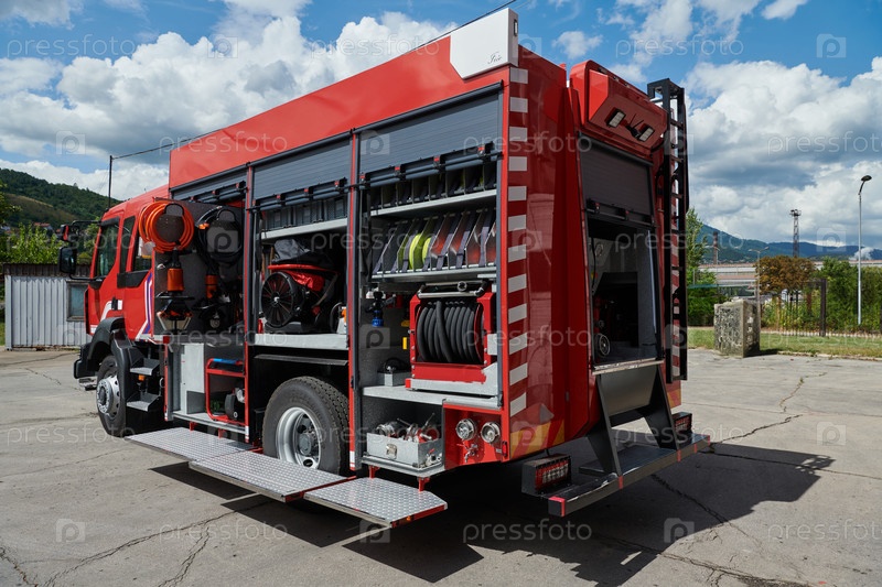 Современная пожарная машина, оснащенная передовыми спасательными технологиями, вместе со своей опытной пожарной командой готова вмешаться и быстро отреагировать на чрезвычайные ситуации, обеспечивая безопасность и защиту населения
