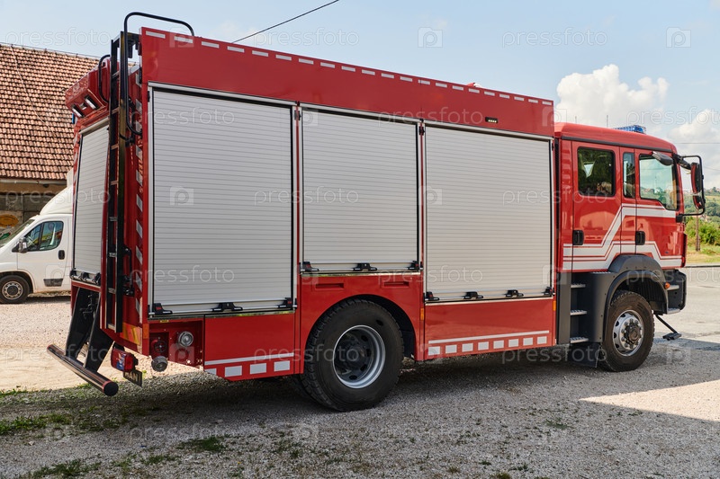 Современная пожарная машина, оснащенная передовыми спасательными технологиями, вместе со своей квалифицированной пожарной командой готова вмешаться и быстро отреагировать на чрезвычайные ситуации, обеспечивая безопасность и защиту населения