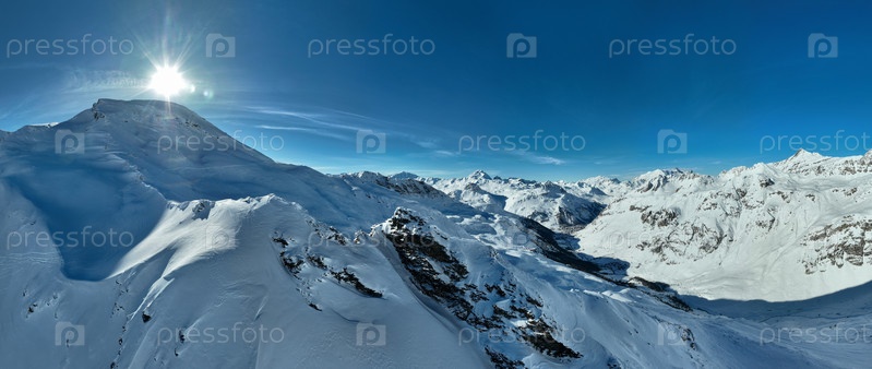 Зимний снимок лыжных трасс и склонов, покрытых свежим снегом, с дрона в Тине, Валдизер, Франция