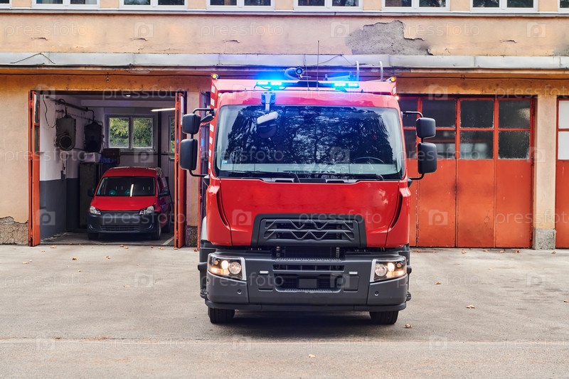 Современная пожарная машина, оснащенная передовыми спасательными технологиями, вместе со своей квалифицированной пожарной командой готова вмешаться и быстро отреагировать на чрезвычайные ситуации, обеспечивая безопасность и защиту населения
