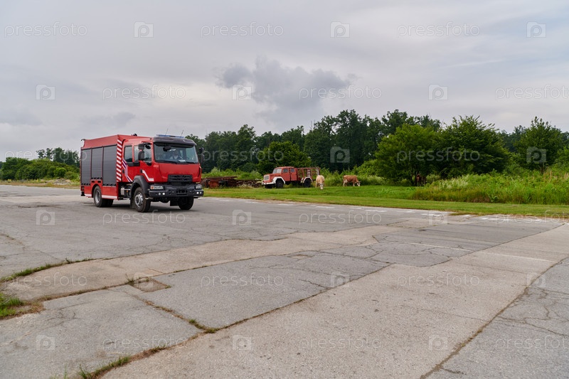 В этой захватывающей сцене современная пожарная машина, оснащенная передовыми спасательными технологиями, вместе со своей опытной пожарной командой готова вмешаться и быстро отреагировать на чрезвычайные ситуации, обеспечивая безопасность и защиту населен