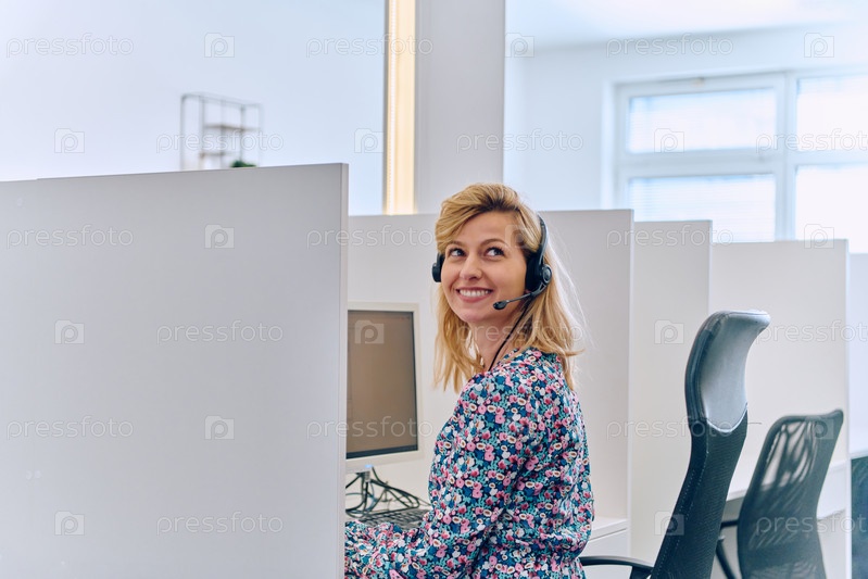 Женщина-агент колл-центра, оказывающая поддержку и помощь клиентам
