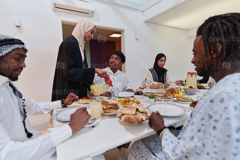 В священный месяц Рамадан мусульманская семья радостно собирается за столом, с нетерпением ожидая общего ифтара, участвуя в приготовлении общей трапезы и объединяясь в ожидании коллективной молитвы, воплощая дух единения, преданности и культурный праздник