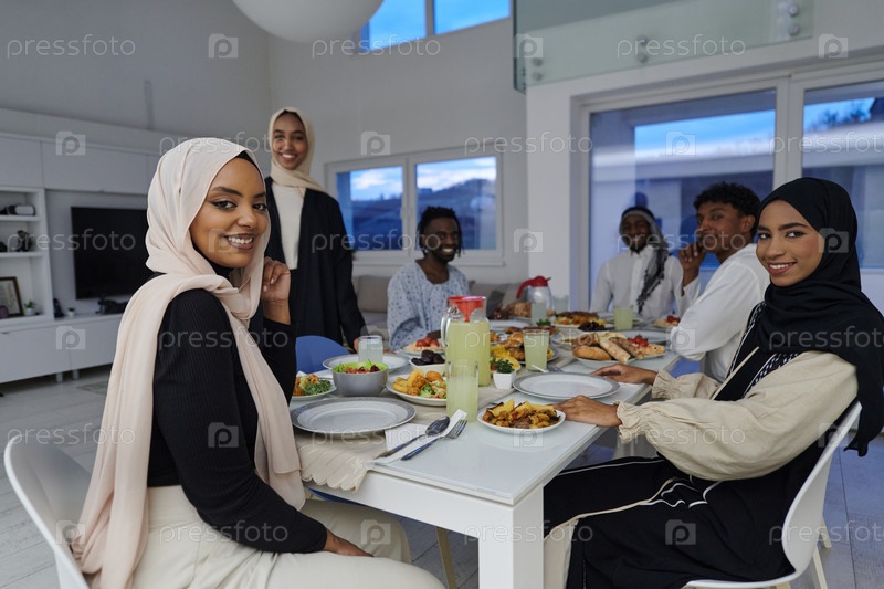 В священный месяц Рамадан мусульманская семья радостно собирается за столом, с нетерпением ожидая общего ифтара, занимаясь приготовлением общей трапезы и объединяясь в ожидании коллективной молитвы, воплощая дух единения, преданности и культурный праздник
