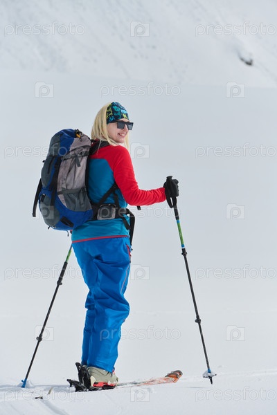 Профессиональная лыжница радуется успешному восхождению на заснеженные вершины Альп