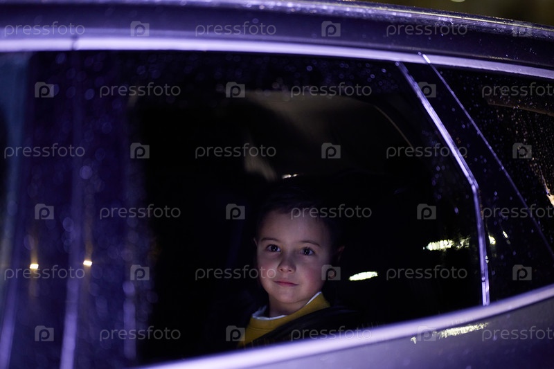 Маленький мальчик наслаждается поездкой на машине, запечатленной через окно, наблюдая за проезжающими пейзажами
