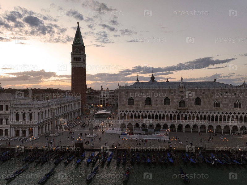 Панорамная достопримечательность Венеции на закате или ночью, вид с воздуха на площадь Сан-Марко