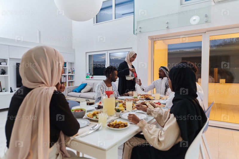 В священный месяц Рамадан мусульманская семья радостно собирается за столом, с нетерпением ожидая общего ифтара, занимаясь приготовлением общей трапезы и объединяясь в ожидании коллективной молитвы, воплощая дух единения, преданности и культурный праздник