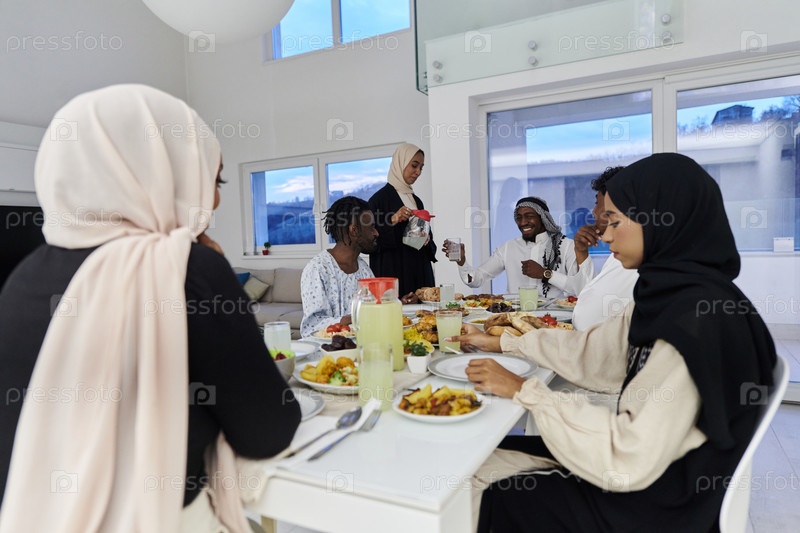 В священный месяц Рамадан мусульманская семья радостно собирается за столом, с нетерпением ожидая общего ифтара, участвуя в приготовлении общей трапезы и объединяясь в ожидании коллективной молитвы, воплощая дух единения, преданности и культурный праздник