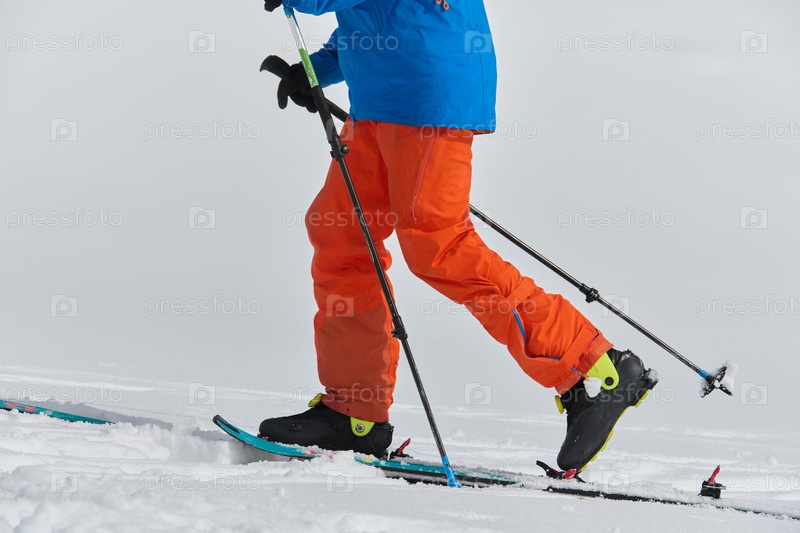 Крупный план лыжного снаряжения, готового к сложному восхождению