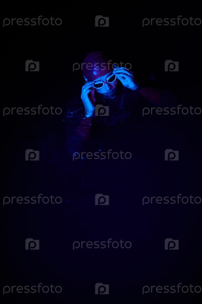 Настоящий пловец-триатлет, отдыхающий во время тяжелых тренировок при ночном неоновом гелевом свете