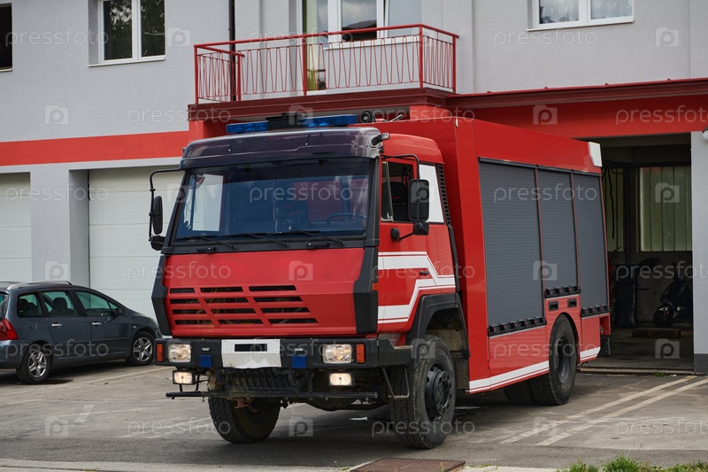Современная пожарная машина, оснащенная передовыми спасательными технологиями, вместе со своей квалифицированной пожарной командой готова вмешаться и быстро отреагировать на чрезвычайные ситуации, обеспечивая безопасность и защиту населения