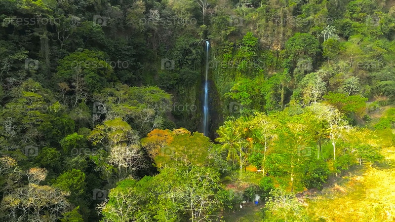 водопад со скалы в лесу