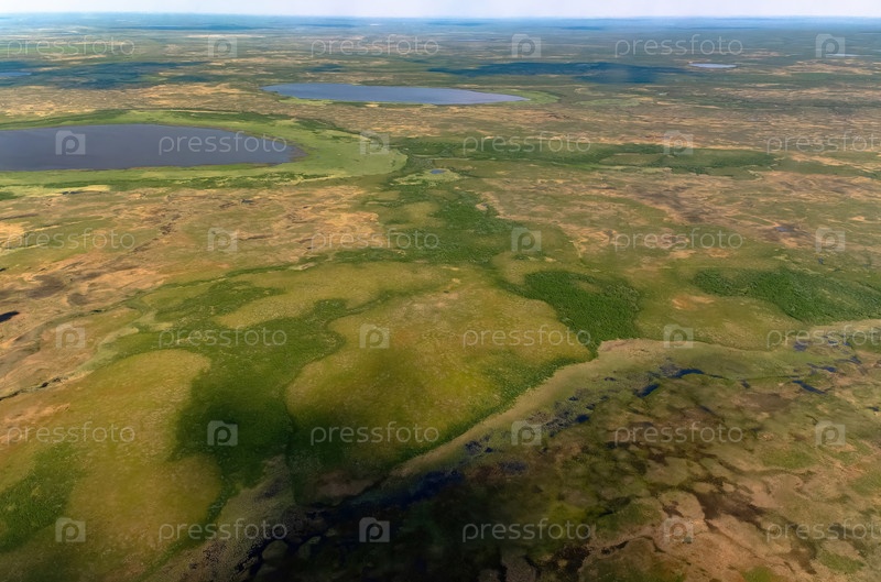 Арктическая тундра летом с высоты 2000 метров. Облачное небо. Разнообразие цветов и пейзажей. Просторы первозданной природы. Тень от облаков