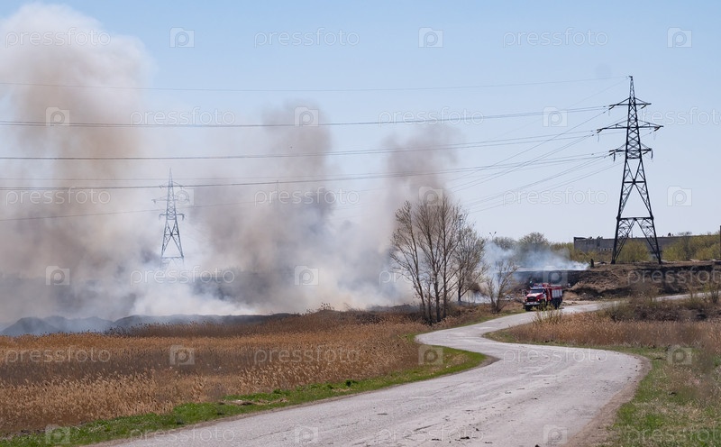 Возгорание сухой травы и камыша возле жилых домов