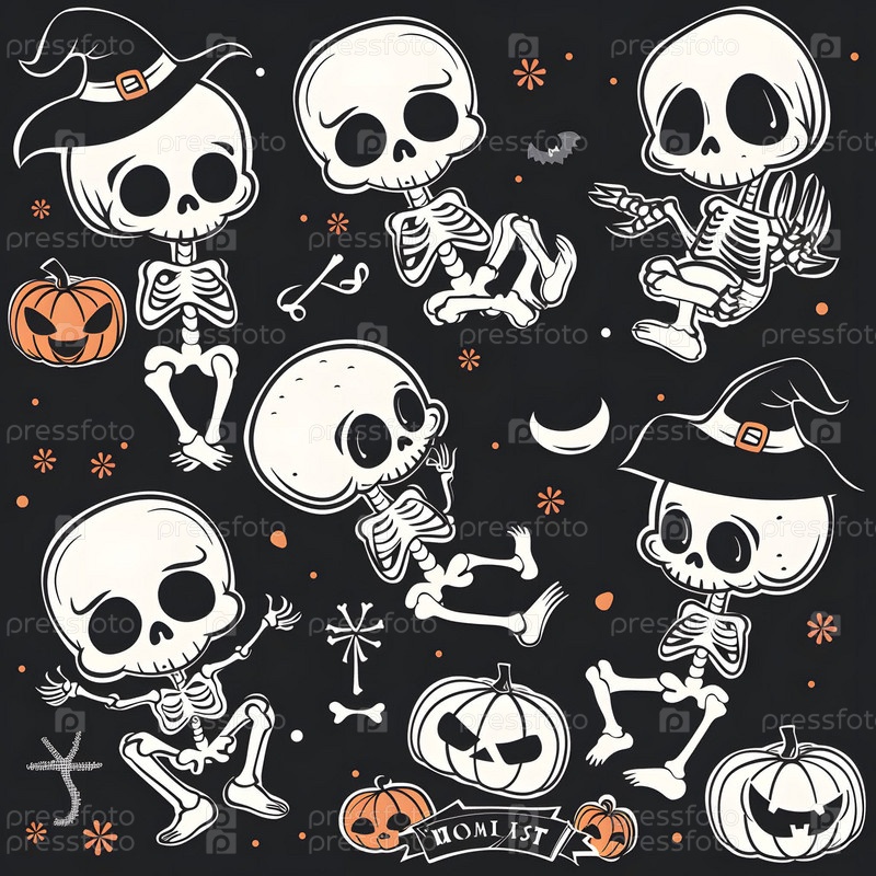 Хэллоуинский набор. Тыква и котел. концепция в стиле каракулей и эскизов. Ручная иллюстрация для печати на футболках, открытках