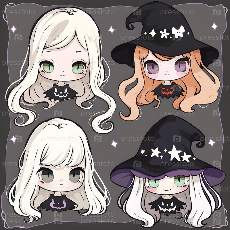 Милая ведьма в шляпе на белом фоне, графическая иллюстрация, ведьма в стиле аниме, ведьма в шляпе, тема Хэллоуина