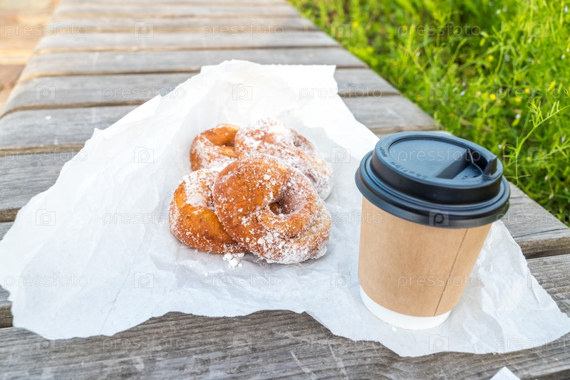 Пикник с пончиками и стаканчиком кофе