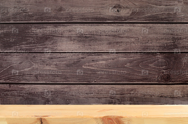 Пустой деревянный стол со старой стеной с местом для текста, деревенский стиль, эко-концепция, макет кухни для дизайна и витрина для демонстрации продукта, шаблон с текстурой,
