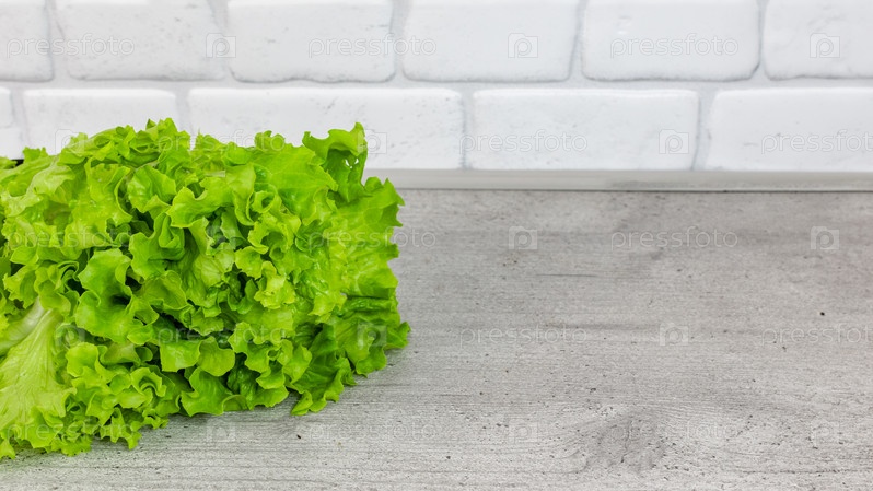 Зеленый салат на кухонном столе