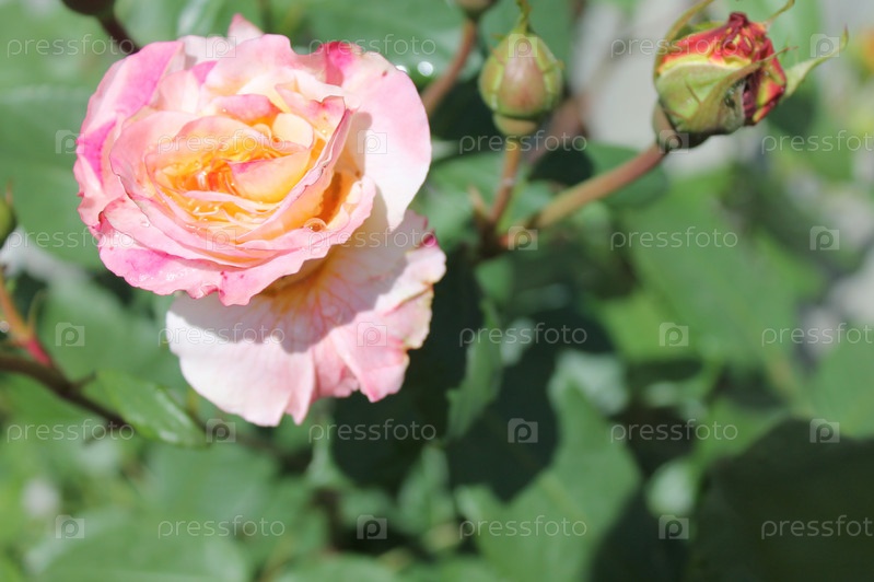 Розовая роза с бутонами