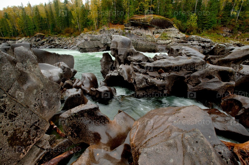 Россия. Восточные Саяны. Красноярский край. Причудливые скалы безлюдных притоков реки Казыр, которая несет свои воды в сибирский Енисей