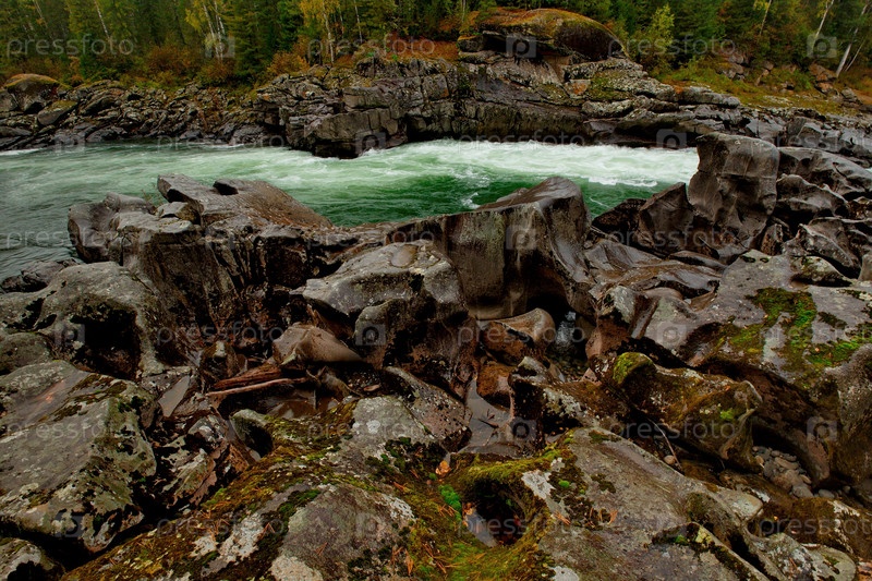Россия. Восточные Саяны. Красноярский край. Причудливые скалы безлюдных притоков реки Казыр, которая несет свои воды в сибирский Енисей