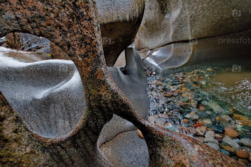 Россия. Восточные Саяны. Красноярский край. Причудливые скалы безлюдных притоков реки Казыр, которая несет свои воды в сибирский Енисей