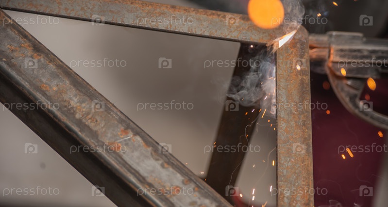 В процессе сварки металла возникают искры и дым