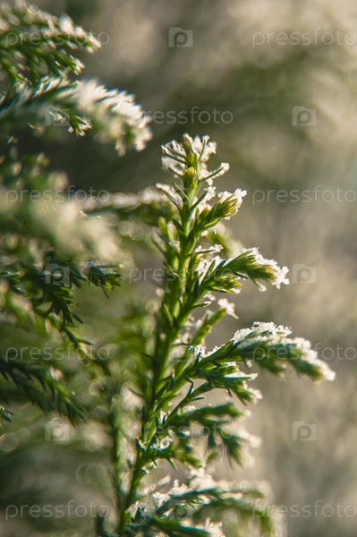 Ветки елки под снегом, фоновое изображение