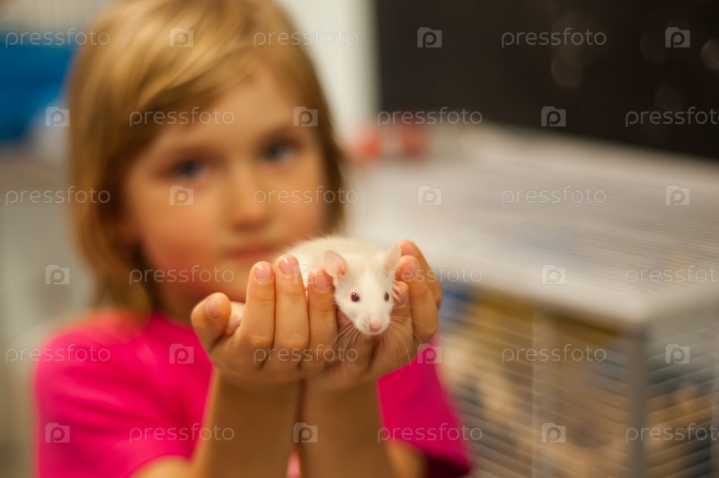 Маленькая девочка держит в руках крысу