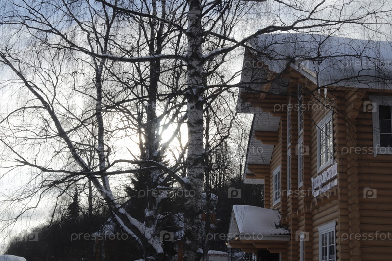 Снежный деревянный домик