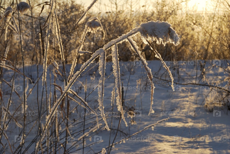 Растения, покрытые снегом, Омская область, Россия